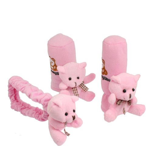 Amico Bear Print Car Shift Knob Rearview Mirror Handbrake Cover Sleeve Pink 3 Pcs - Product Information